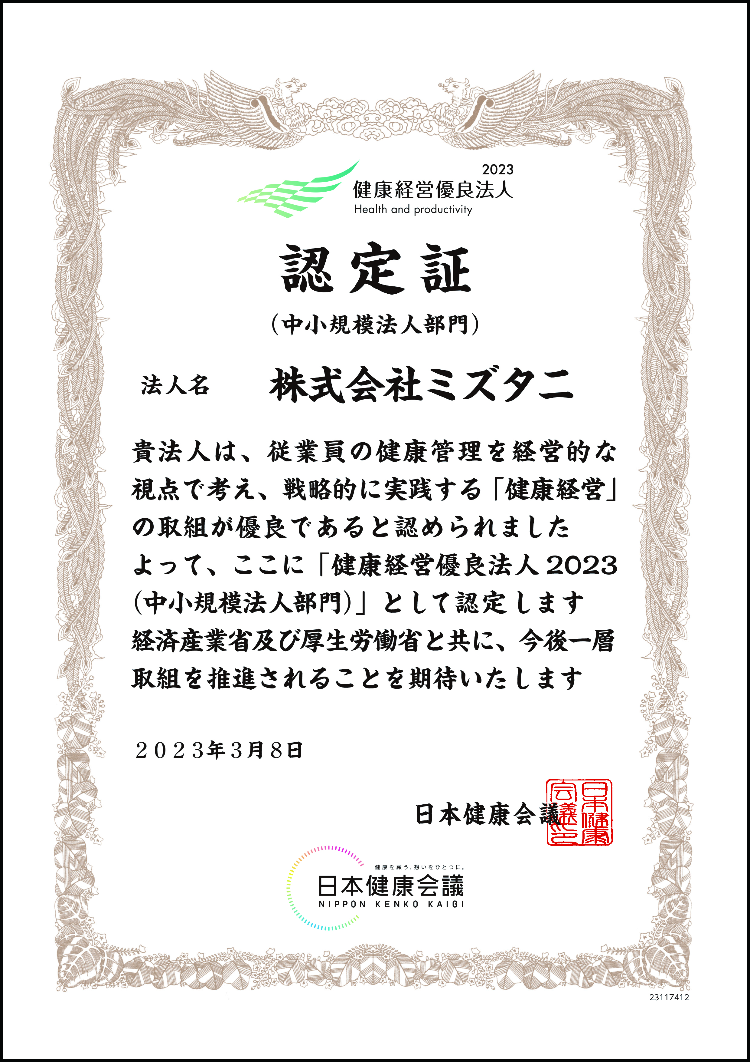 当社は、昨年度に引き続き『健康経営優良法人2023(中小規模法人部門)』に認定されました。